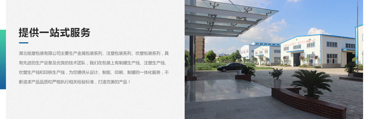湖北銘塑包裝有限公司一家集研發(fā)、生產(chǎn)、銷售于一體的較優(yōu)秀民營(yíng)企業(yè),技術(shù)力量雄厚,產(chǎn)品質(zhì)量可靠。位于交通暢順,百業(yè)興旺、經(jīng)濟(jì)富裕、政策開放的孝感開發(fā)區(qū)域。我們企業(yè)的營(yíng)銷戰(zhàn)略是以建筑為土壤,以產(chǎn)品為種子,以質(zhì)量為肥料,讓綠色鋪滿全球。憑借多年來的行業(yè)經(jīng)驗(yàn),公司不斷進(jìn)行創(chuàng)新和研發(fā),為市場(chǎng)提供更廣泛的產(chǎn)品應(yīng)用領(lǐng)域和更好環(huán)保節(jié)能產(chǎn)品,為國(guó)家能源環(huán)保戰(zhàn)略和可持續(xù)發(fā)展戰(zhàn)略作出應(yīng)有的貢獻(xiàn)。     湖北銘塑包裝有限公司主要生產(chǎn)金屬包裝系列、注塑包裝系列、吹塑包裝系列,具有先進(jìn)的生產(chǎn)設(shè)備及優(yōu)良的技術(shù)團(tuán)隊(duì),我們?cè)诎b上有制罐生產(chǎn)線、注塑生產(chǎn)線、吹塑生產(chǎn)線和印鐵生產(chǎn)線,為您提供從設(shè)計(jì)、制版、印刷、制罐的一體化服務(wù),不斷追求產(chǎn)品品質(zhì)和嚴(yán)格執(zhí)行相關(guān)檢驗(yàn)標(biāo)準(zhǔn),打造更好的產(chǎn)品!